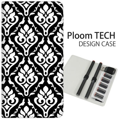 プルームテック ケース Ploom TECH ケース 手帳型 2本収納 【ダマスク柄 モノトーン】 メール便送料無料