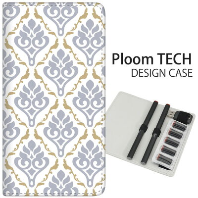 プルームテック ケース Ploom TECH ケース 手帳型 2本収納 【ダマスク柄 ペールトーン(ブルー)】 メール便送料無料