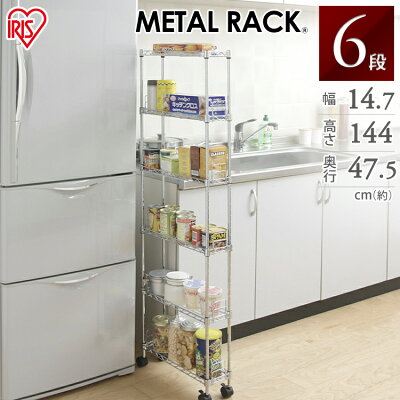 キッチンラック キッチン 収納 メタルスリム《幅15cm×奥行き48cm×高さ144cm》MK-1514Nメタルラック 棚板6枚 メタルシェルフ パイプラック スチールシェルフ ワイヤーラック 収納 キッチンラック キッチン収納 キャスター付 アイリスオーヤマ