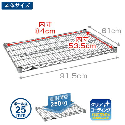 棚面に多数のワイヤーを奥行方向に張ることにより、棚耐荷重250kgを実現したハイレベルなシェルフ(棚)です。