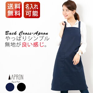 エプロン シンプル 無地 名入れ 刺繍 男女兼用 女性用 男性用 ワンピース フリーサイズ 黒 ネイビー カフェエプロン 仕事用 クロス ネイル サロン シワになりにくい プレゼント ギフト