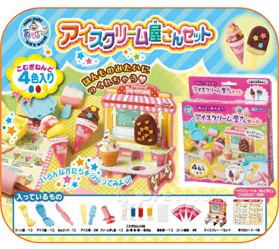粘土型 粘土 型 アイスクリーム屋さんセット ねんど押し型 こむぎねんど4色入 A-IZ4DF 銀鳥産業 安全 粘土 ねんど スイーツ ねんど型 型 工作 ままごと 自由研究 知育玩具 3歳 4歳 5歳