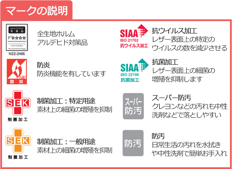 アコーデオンカーテンの素材には抗菌、SEK(制菌加工)、消臭、防汚、スーパー防汚など、いろいろな汚れや細菌から汚れを防ぐ、薬品を使わずに防虫対策、また、部屋を仕切ることで冷暖房効率もアップする効果があります。
