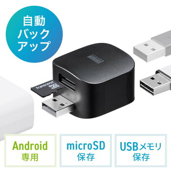 バックアップカードリーダー Android専用 アンドロイド用 microSD USBメモリ 充電 カードリーダー 400-ADRAS1BK